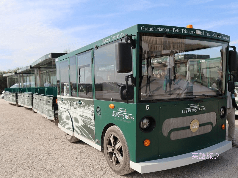 旅の間は毎日最低8000歩多くて27000歩を歩いていた私も、さすがにプチトリアノンからの帰りは宮殿内シャトルバス↓Les Petits Trainsを使いました…。片道5ユーロ(障害者割引は無し)。フルのチケットを買っていれば9ユーロになり、加えて乗車の際、優先的に乗れるようでした。