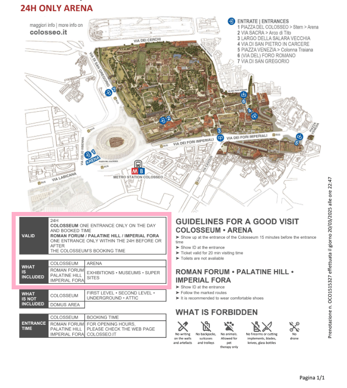 私は「24H ONLY ARENA:コロッセオのアリーナ(1階部分)とパラティーノの丘+フォロロマーノに入れるチケット(24時間有効)」を買いました。