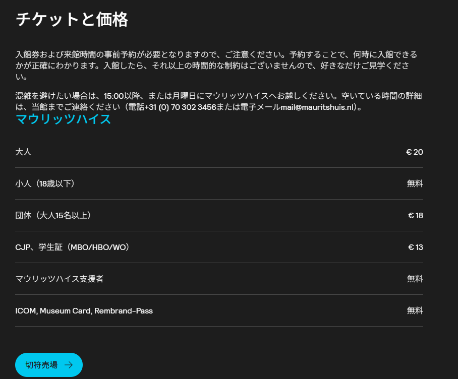 マウリッツハイス美術館のチケット売り場で、障害者割引があるかを聞いたところ、「ない」というそっけない返事。