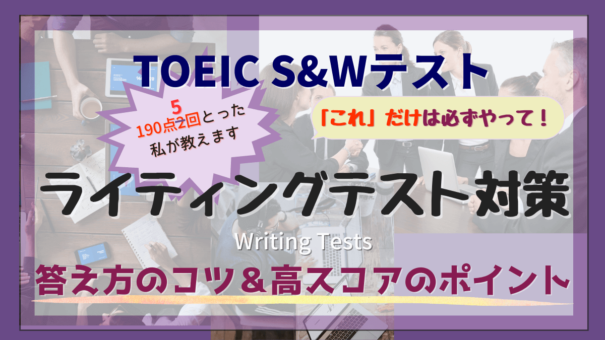 TOEIC S&Wテスト対策については、TOEIC S&Wスピーキング・ライティングテスト対策まとめ【試験前の勉強のしかた・高スコアを取れる答え方のコツ】▼でもまとめていますので、よろしかったらご覧ください。