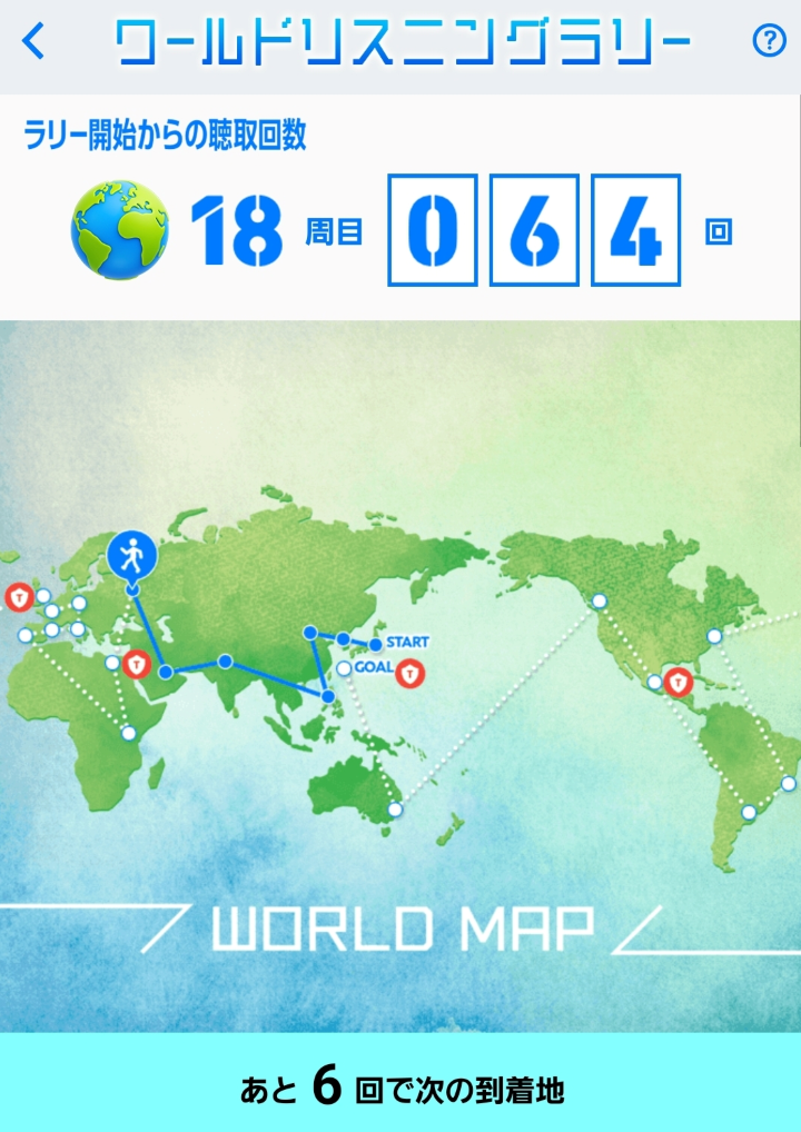 聴講回数に応じて、世界の都市をすごろくのように進み、260回聴くと世界一周ができる「ワールドリスニングラリー」。
